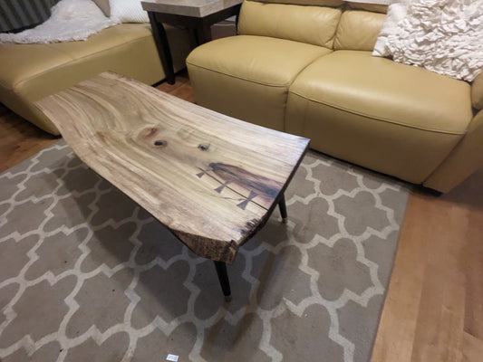 Live Edge Rainbow Poplar Coffee Table with Black Walnut Bow Ties
