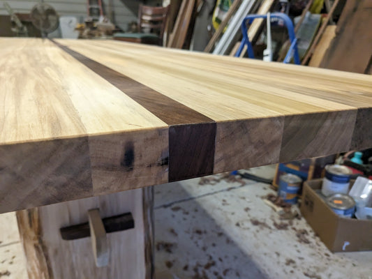 Rainbow Poplar Trestle Table with Live Edge Legs